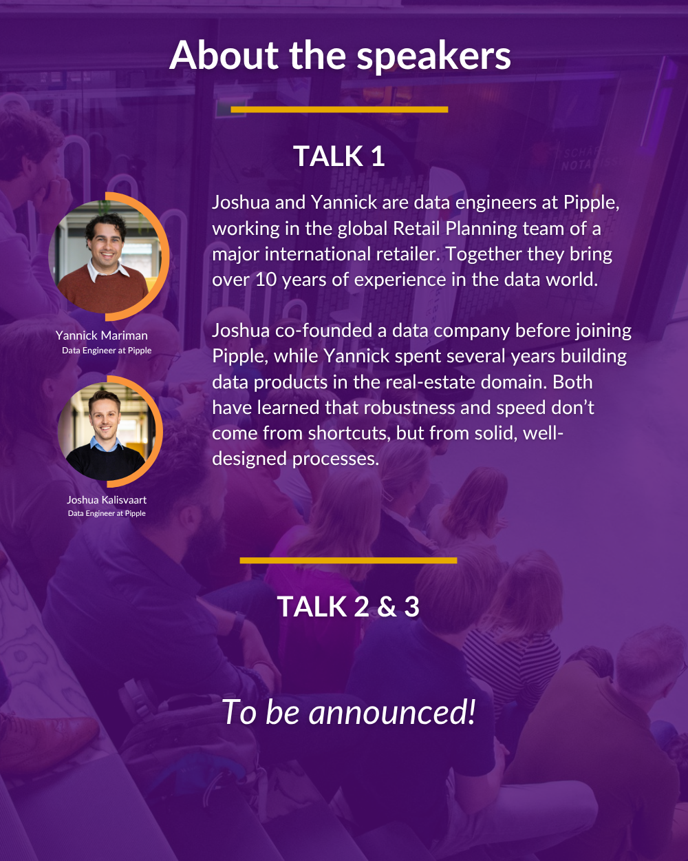 From code to production: how to keep pipelines running smoothly at scale This session offers practical insights for anyone working with data: from engineers maintaining pipelines to analysts and ML developers relying on them. |